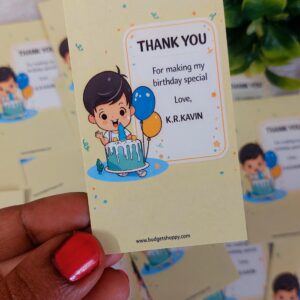 Elegant thank you cards, exclusively designed with names, photos, or special messages – perfect for birthdays, parties, weddings, and return gifts.
