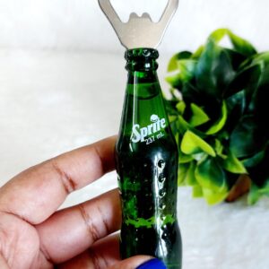 A cute fridge magnet that also works as a bottle opener. Shaped like a mini Sprite bottle, strong and useful. Great for fridge decor and handy when needed!