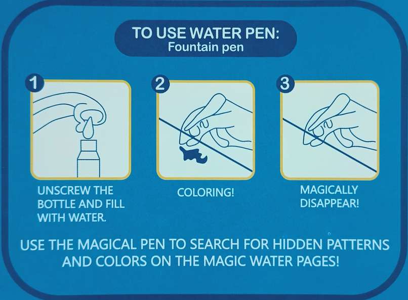 A fun reusable colouring book for kids! 🎨 Just fill the pen with water, shade the page, and watch hidden pictures appear like magic. Once it dries, the images disappear — ready to play again and again!